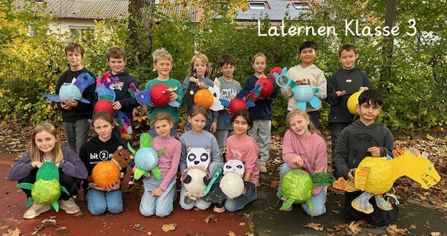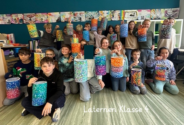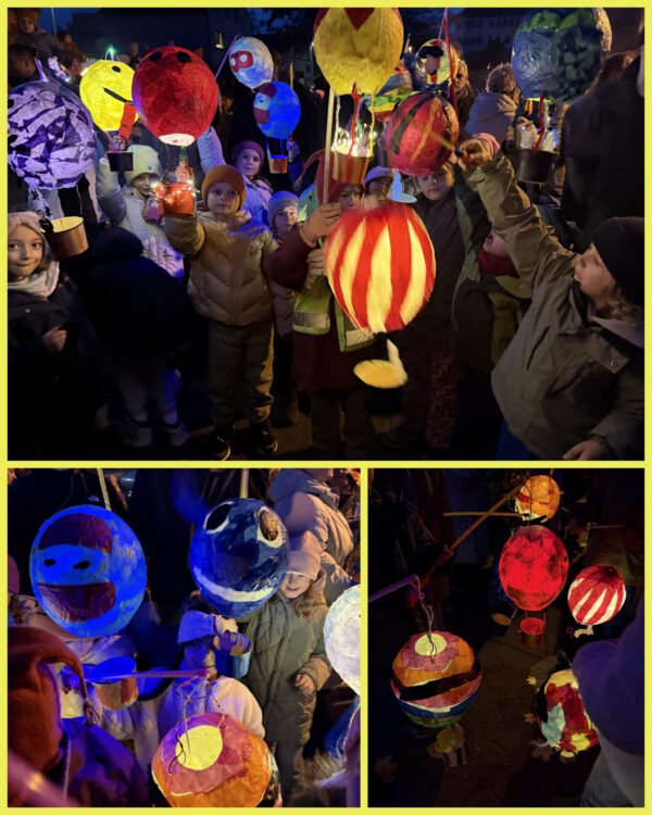 Bilder von den leuchtenden Laternen der Klasse 2 beim Martinsumzug in Bingen-Kempten (06.11.2025):