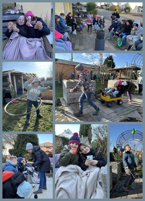 „Das ist der schönste Tag!“ Diese Äußerung eines Kindes während der Lesewanderung der Klasse 4 drückt aus, was viele aus der Hundeklasse dachten. Die Eltern gaben sich auch viel Mühe, das Vorlesen zu einem besonderen Erlebnis werden zu lassen. Ein Vater las vor, während die Kinder mit Plätzchen und Getränk um eine gemütliche Feuerstelle herum saßen. Eine Mutter hatte Pfannkuchen gebacken, passend zum Buch, das sie vorlas und in dem es um eine Pfannkuchenparty ging. Wieder eine andere Familie organisierte ein Lagerfeuer, über dem Marshmallows geröstet werden durften. Außerdem gab es nach dem Vorlesen noch ein passendes Lesespiel für alle. Herzlichen Dank an die Leseeltern, dass sie die Lesewanderung zu einer tollen Erfahrung für die Kinder gemacht haben!